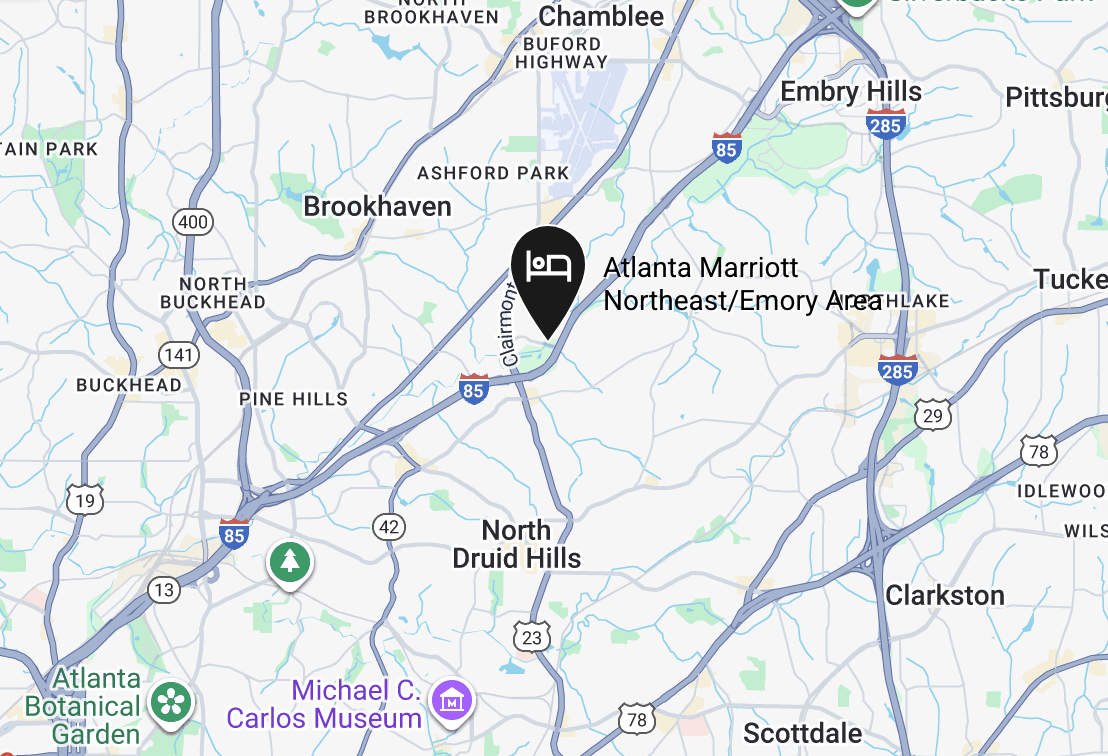 Hotel shuttles are available from the Brookhaven MARTA station.
